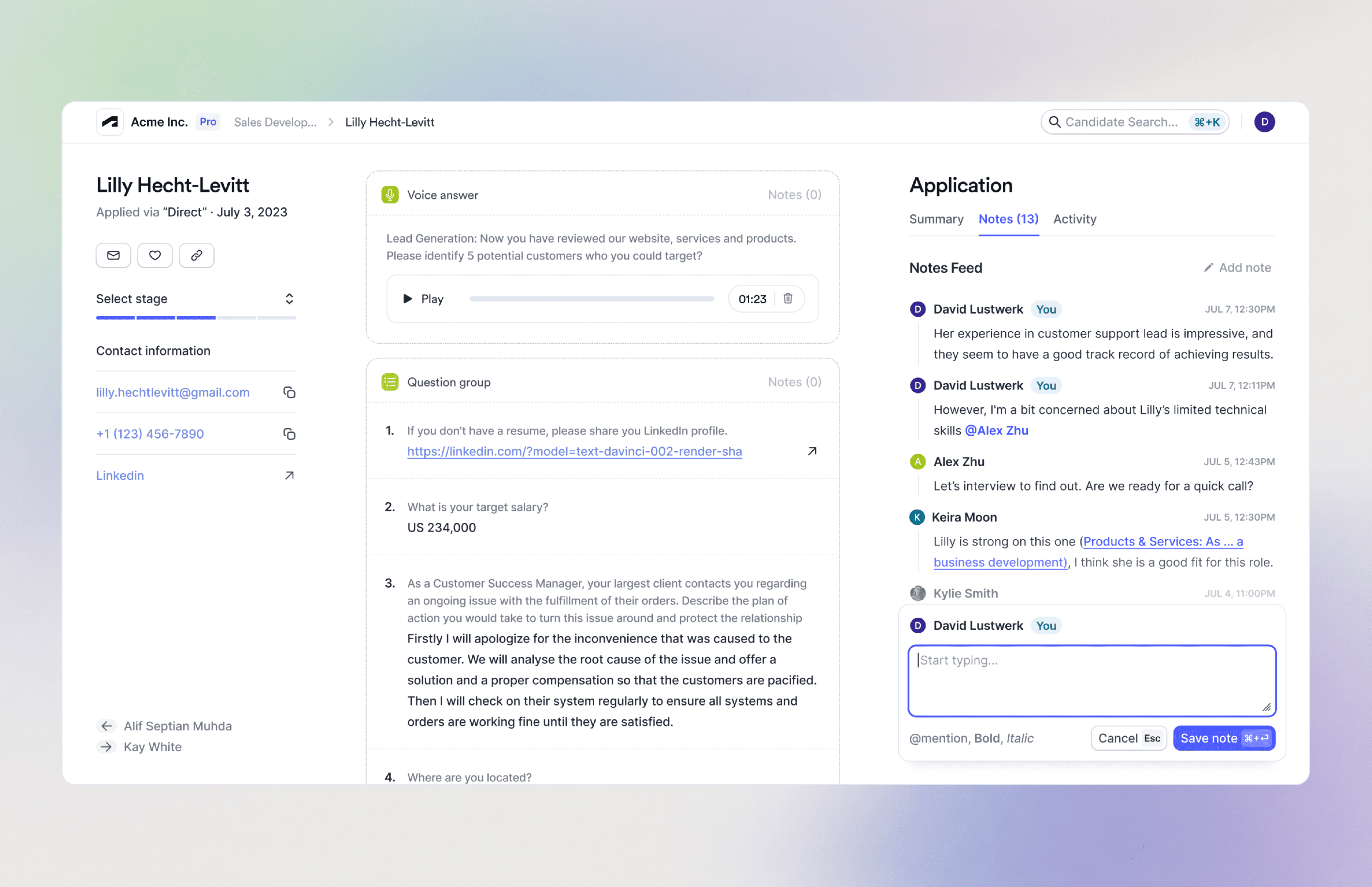AI-powered ATS and async video interview software for high-volume hiring. Built bias-reducing applicant scoring, automated screening workflows, and Typeform-style application flows. Managed 4 launches on ProductHunt with 3 Product of the Day wins. Developed GTM strategy including setting up fully automated cold outreach campaigns, SEO, AIO, and pricing strategy.